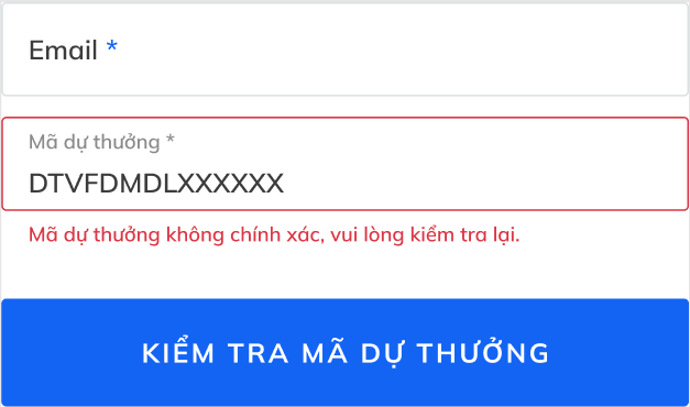 + Bước 2: Điền thông tin Email và MDT và Bấm vào nút “KIỂM TRA MÃ DỰ THƯỞNG”.